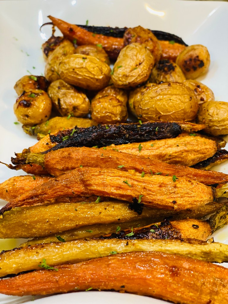 Roasted baby carrots and potatoes